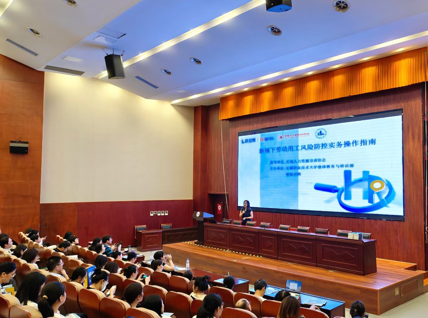 为精准对接企业劳动用工管理需求,助力地方经济高质量发展,9 月 19 日 下午,由无锡人力资源培训协会指导,我校和智联招聘联合主办的 “新规下劳动用工风险防控实务操作指南”公益培训在国际交流中心第一报告厅举办。