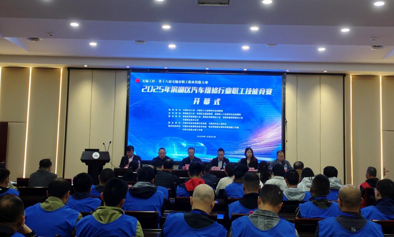 10月25日,2025年滨湖区汽车维修行业职工技能竞赛在我校举办。校党委书记龚方红、无锡市滨湖区总工会党组书记曹洪达、滨湖区交通运输局副局长傅晓光、滨湖区人力资源和社会保障局副局长胡萍等领导出席开幕式。