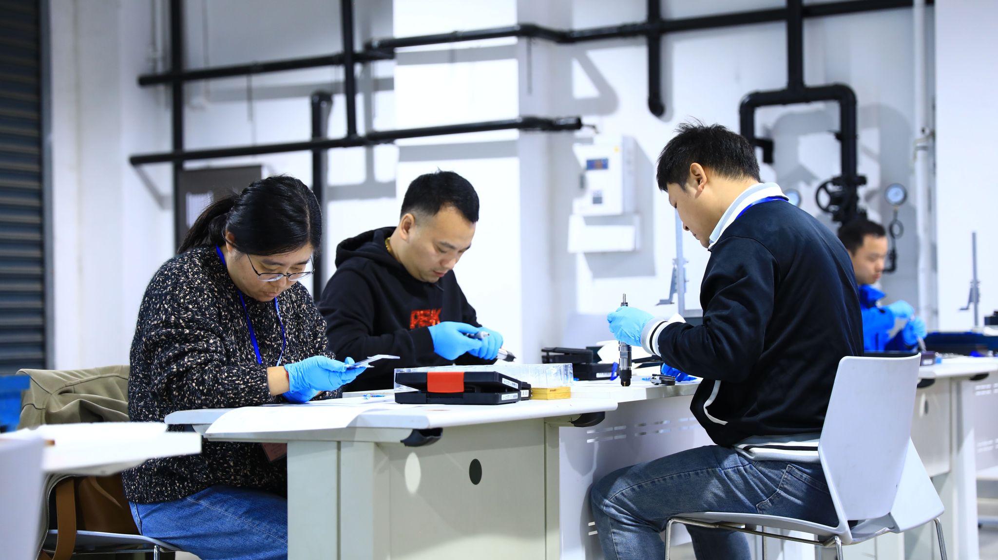 本届大赛设有8个项目的团体赛和个人赛,以“砺技塑新,同心定胜”为主题,重点展现“团结、拼搏、协作、创新”精神,共有300余名选手参加。控制学院依托在智能控制、电气自动化等领域的专业优势,赛前与企业共同设计赛题、共建评审标准,确保竞赛内容与产业前沿技术紧密衔接。在电工编程、装配速度、数控精度等比赛项目中,企业导师与学生结对协作,创新采用企业工程师与在校学生“同台竞技、统一考核、同标评价”模式,实现“车间经验”与“课堂知识”的互补互鉴,充分展现了深化产教融合、校企协同育人的生动实践。
