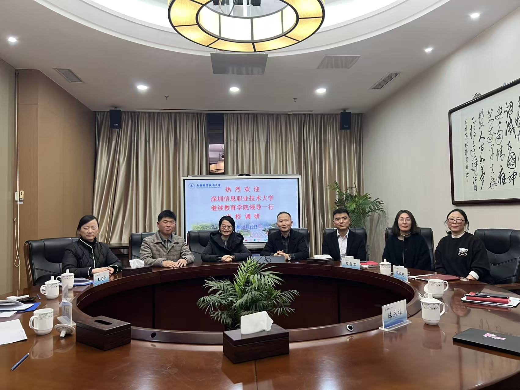 12月12日下午,深圳信息职业技术大学继续教育学院院长李晓堂一行到我校调研,学校继续教育与培训部主任饶成明接待来访一行。