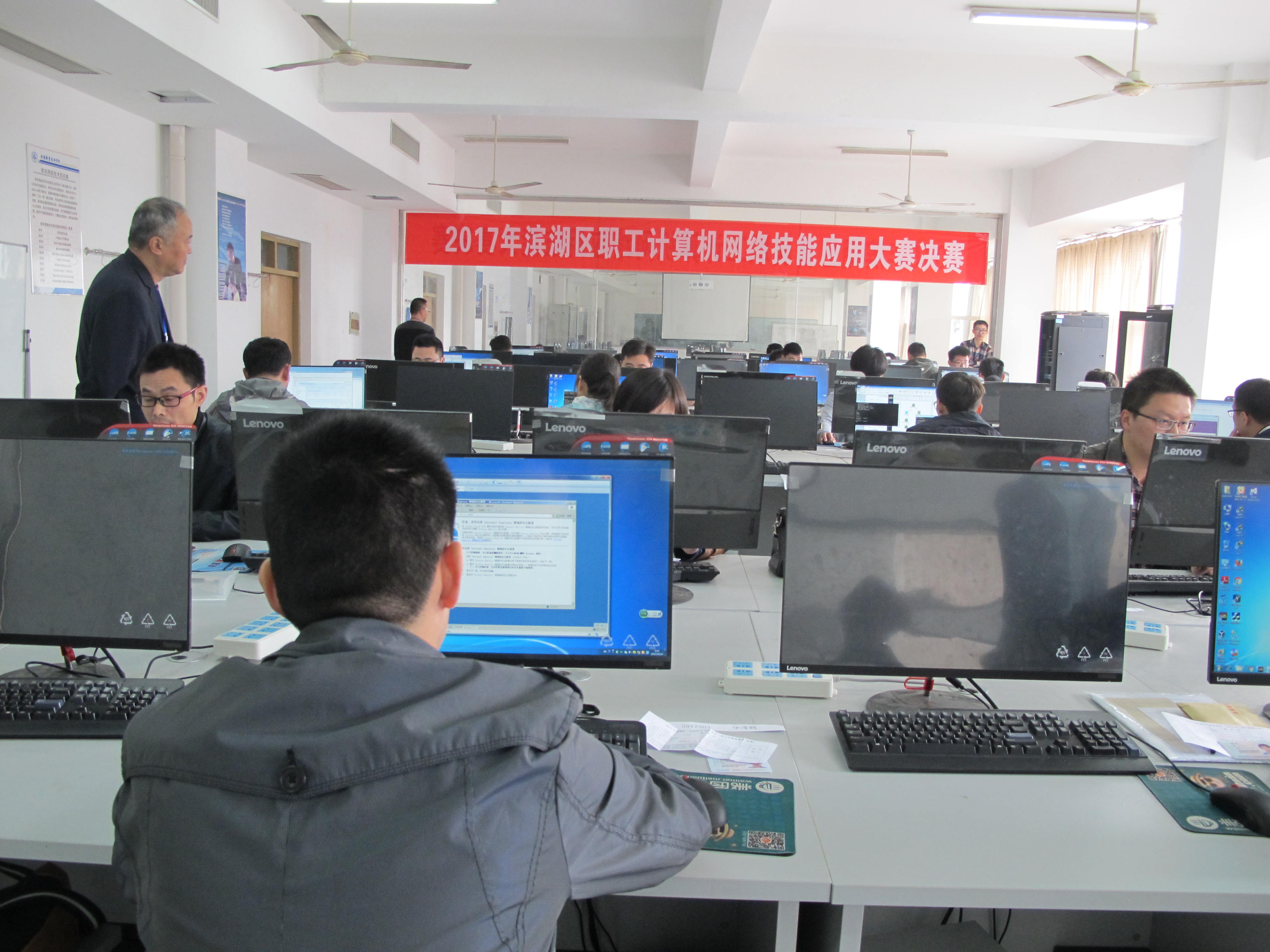 二是技能提升激励制度。区总年初向全区职工(或社会人士)免费开放与我院合作开发的“滨湖区职工网上培训平台”,发放网上培训学习宣传手册1万份,由企业工会发动职工利用业余时间学习技能。目前已有7000余名职工参加网上技能学习;同时对企业职工参加现场培训有实际需求时开展定向培训,由各街道工会或企业组织,区总与我院合作开展送教进街道或进企业活动,目前已在机电维修、计算机辅助设计、数控车工、办公软件应用等方面送教上门7场次,培训职工350余名。与此相结合,区总于9月中旬至10月中旬在我院举办本次竞赛月活动,组织200余名职工参加赛前培训,并进行技能操作大赛,对优胜选手进行通报表彰与奖励。