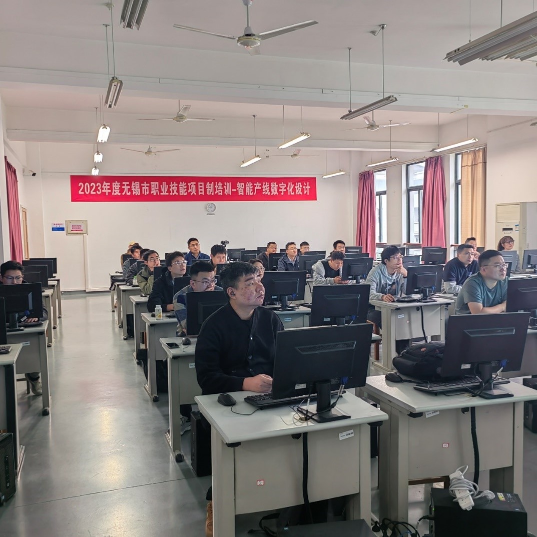 2023年11月12日上午,由我校控制技术学院承办的无锡市职业技能提升行动项目制培训“智能产线数字化设计”培训班在工业中心B楼-404开班。本次培训旨在提高职工技能水平,增强就业竞争力,促进企业发展。无锡市区相关行业的30多位企业工程技术人员报名参加了本次培训。