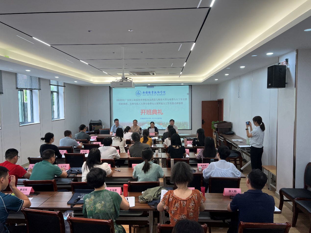 815日,2023年广东轻工职业技术学院食品药品与粮食大类专业带头人工学交替式研修班、生物与化工大类专业带头人领军能力工学交替式研修项目江苏段研修班在无锡职业技术学院汽车与交通学院二楼培训教室开班。无锡职业技术学院继续教育学院院长崔平教授、汽车与交通学院党总支书记张美娟教授、汽车与交通学院院长邹晔教授、广东轻工职业技术学院制药教研室主任段迪博士以及培训班全体学员33人出席了开班仪式。