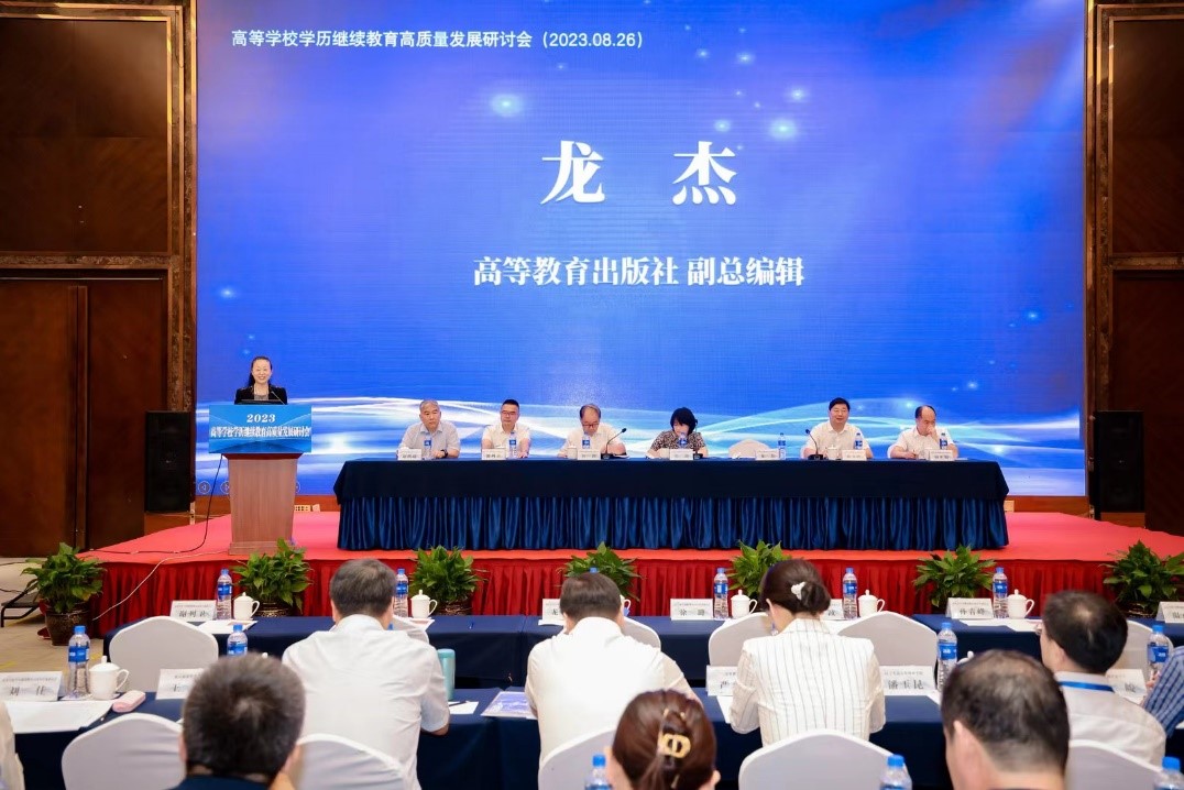 为贯彻落实党的二十大报告关于“建设全民终身学习的学习型社会、学习型大国”的部署要求,落实《教育部关于推进新时代普通高等学校学历继续教育改革的实施意见》 《普通高等学校举办非学历教育管理规定(试行)》等一系列政策文件精神,促进高等学历继续教育提质创优,中国成人教育协会、高等教育出版社于8月26日—27日在杭州联合举办高等学校学历继续教育高质量发展研讨会。教育部职业教育与成人教育司相关部门负责人,各高校校长、副校长,学历继续教育相关领导、管理部门和学院负责人200名余名代表参加会议。会议由中国成人教育协会副会长兼秘书长赵跃进主持,高等教育出版社副总编辑龙杰、中国成人教育协会副会长江波、杭州市教育局党委委员、副局长孙青峰等致辞。教育部职成司高等继续教育处副处长徐璐做了《新时代高等继续教育高质量发展的形势与任务》的主旨报告。