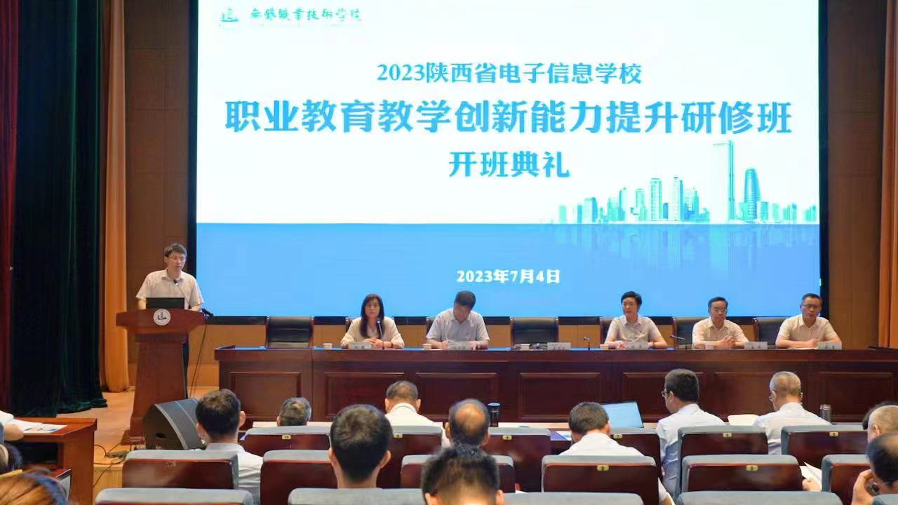 热情似火赛骄阳,胜友如云齐谈畅。7月4日上午,为期8天的“2023陕西省电子信息学校职业教育教学创新能力提升研修班”在无锡职业技术学院厚德楼一楼报告厅隆重开班。无锡职业技术学院副校长奚茂龙、继续教育学院院长崔平、设计艺术学院党总支书记苗勇,陕西省电子信息学校党委书记顾学福、校长魏萍出席了开班仪式。仪式由设计艺术学院院长杨敏主持。
