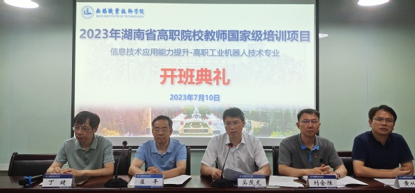 710日上午,2023年湖南省职业院校教师素质提高计划-“三教改革研修-信息技术应用能力提升研修班的开班典礼在控制技术学院202会议室顺利进行。我校副校长奚茂龙、继续教育学院、控制技术学院相关负责人出席开班典礼,来自湖南省高职院校工业机器人专业的50位老师参加开班仪式。开班典礼由控制技术学院副院长丁健主持。