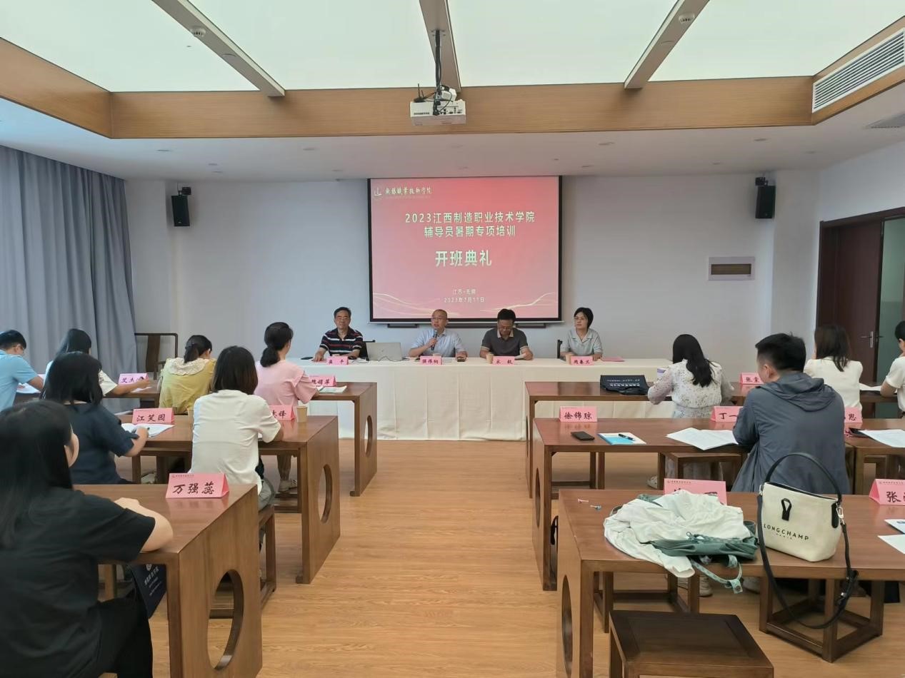7月11日上午,由无锡职业技术学院马克思主义学院承办的2023年江西制造职业技术学院辅导员暑期专项培训班开班仪式在学校崇德楼孔子课堂隆重举行。无锡职业技术学院副校长强伟纲研究员、继续教育学院院长崔平教授、宣传部部长兼马克思主义学院院长周春兰教授、江西制造学院学生工作处处长宋毅出席活动。开班仪式由周春兰主持。