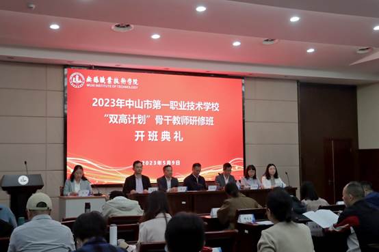 5月9日上午,由我校财经学院承办的中山市第一职业技术学校“双高计划”骨干教师研修班在国际交流中心二楼报告厅举行开班仪式。我校党委书记龚方红教授、继续教育学院院长崔平、财经学院党总支书记李湘、副院长蒋宏成、办公室主任余臻蔚及培训班全体学员参加了开班仪式。