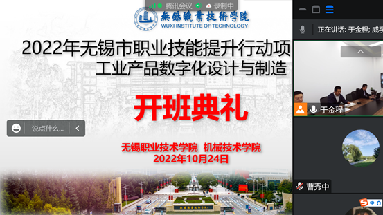 2022年10月24日晚,由无锡市人力资源和社会保障局主办、无锡市高技能人才公共实训管理服务中心协办、无锡职业技术学院机械技术学院承办的“工业产品数字化设计与制造”培训项目正式开班。来自威孚高科技集团股份有限公司、一汽解放发动机事业部、无锡柴油机厂、江苏永瀚特种合金技术股份有限公司、贝斯特精机股份有限公司、蠡湖增压技术股份有限公司等21家本市机械行业企业的43名技术员工和应届年度毕业生参加了线上开班仪式。