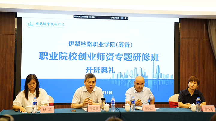 炎炎夏日,情燃江南。8月1日上午,来自新疆维吾尔自治区伊犁丝路职业学院(筹备)的60名骨干教师来到了太湖明珠之城——无锡,他们将在这里开展为期15天的职业院校创业师资专题研修班学习。上午9时整,研修班全体学员在无锡江南四季酒店会议室举行了隆重的开班典礼,无锡职业技术学院设计艺术学院院长杨敏主持了仪式,无锡职业技术学院党委书记朱爱胜、继续教育学院副院长曹冬美、伊犁丝路职业学院(筹备)院党委委员、纪委书记库尔班江·尼扎木冬出席了仪式。