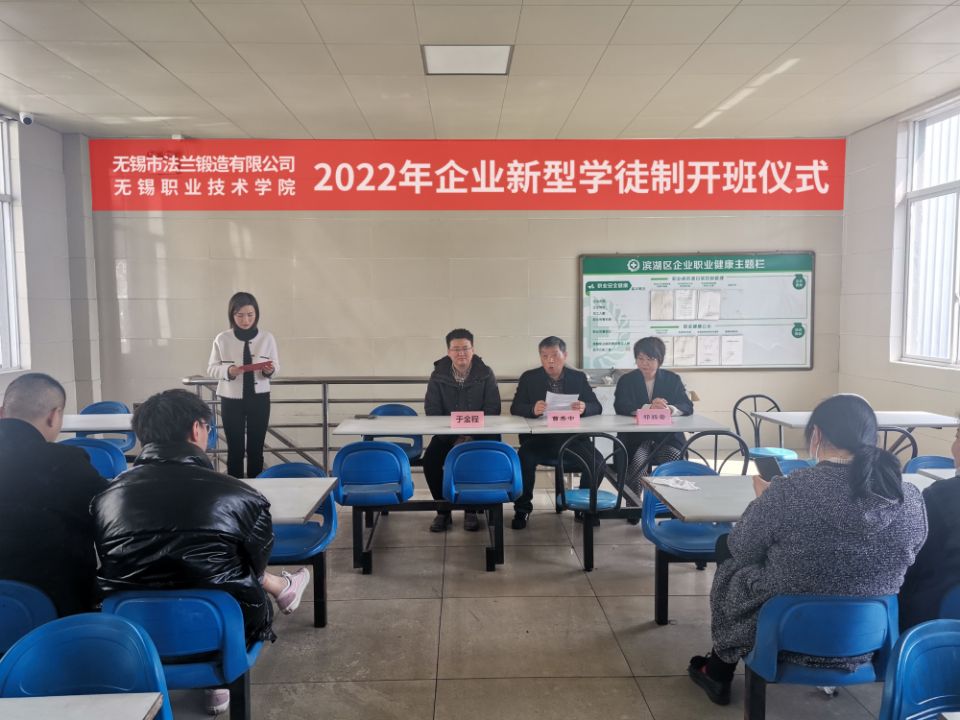 33日中午,我校与无锡市法兰锻造有限公司合作开展的企业新型学徒制数控车工中、高级培训班在无锡市法兰锻造有限公司举行,我校继续教育学院副院长曹秀中教授、机械技术学院副院长于金程副教授、无锡市法兰锻造有限公司常务副总经理祁扬嵛、培训班企校导师、高级班26名和中级班50名学员参加了开班仪式。