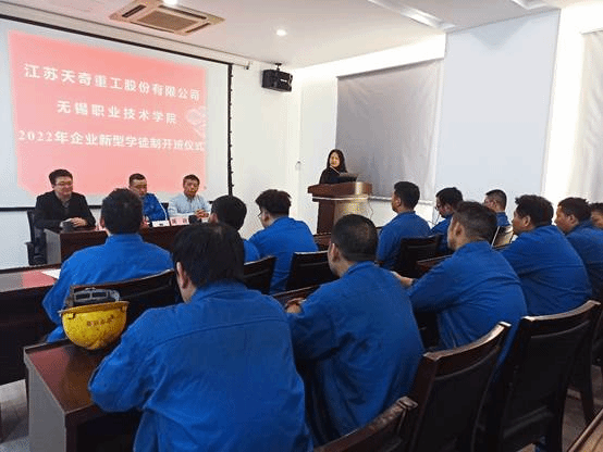 3月11日中午,我校与江苏天奇重工股份有限公司合作开展的企业新型学徒制模具工中级培训班在天奇重工举行,我校继续教育学院副院长曹秀中教授、机械技术学院副院长于金程副教授、江苏天奇重工股份有限公司副总经理蒋政、培训班企校导师和30名学员参加了开班仪式。