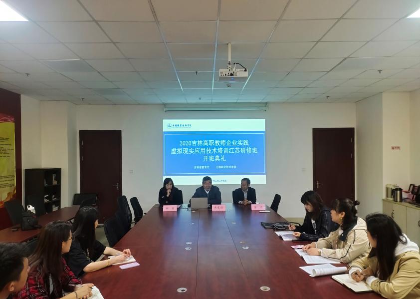 烟花三月,春暖江南。来自北国吉林的高职教师们走进了太湖明珠之城无锡职业技术学院。3月29日上午,为期20天的2020吉林省高职教师企业实践虚拟现实应用技术江苏研修班在无锡职业技术学院综合楼二楼会议室隆重开班,艺术与设计学院院长杨敏主持了开班仪式,校党委书记朱爱胜、继续教育学院院长崔平出席了仪式。