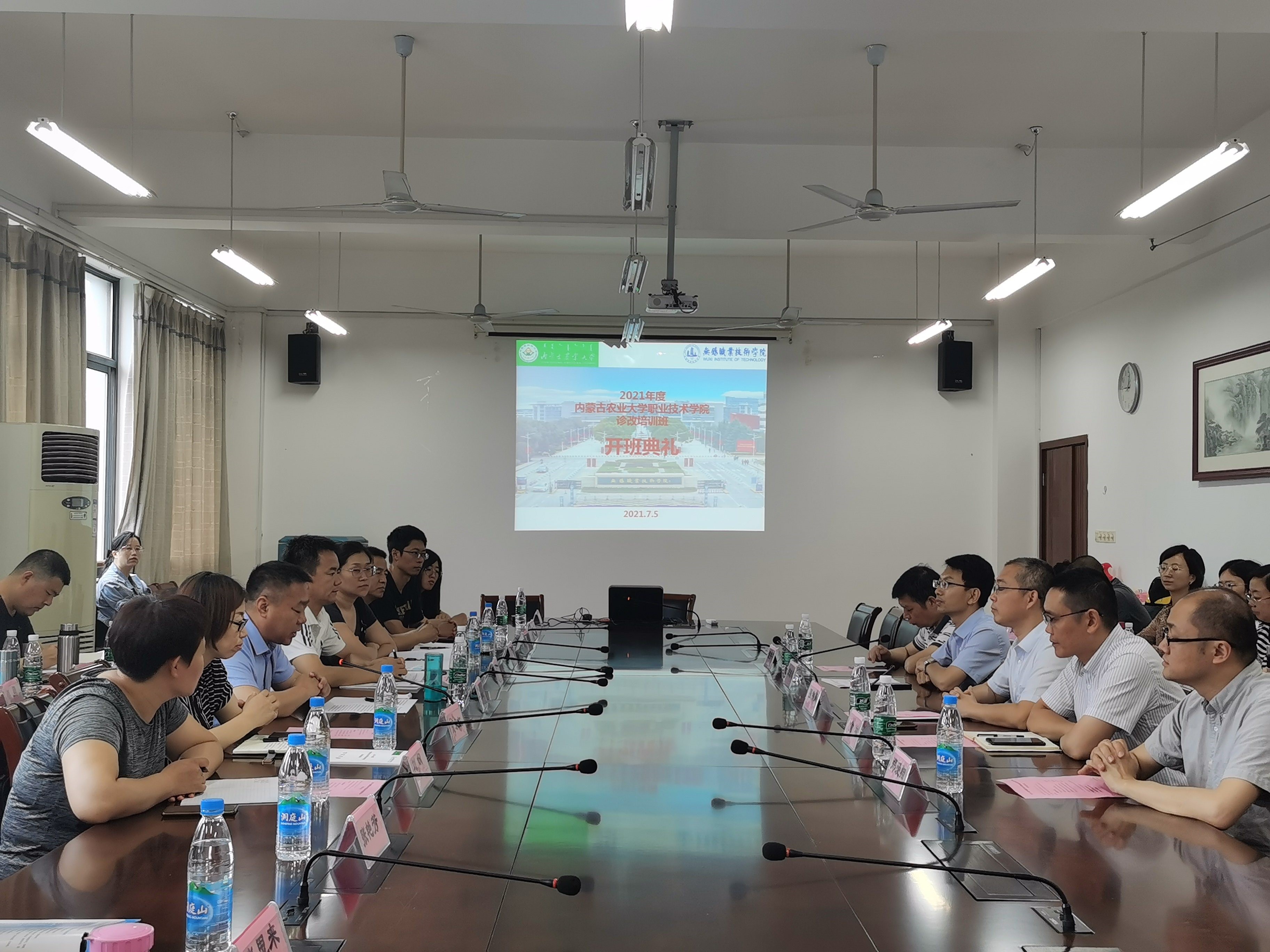 2021年7月5日上午,受内蒙古农业大学职业技术学院委托,无锡职业技术学院承办的“2021年度内蒙古农业大学职业技术学院诊改培训班”在我校顺利开班,开班仪式由管理学院党总支副书记宋瑞超主持。党委委员、副校长强伟纲、管理学院院长俞林、副院长郑爱翔、继续教育学院副院长曹秀中、项目管理人员,以及来自内蒙古农业大学职业技术学院各部门的33位学员参加了开班仪式。