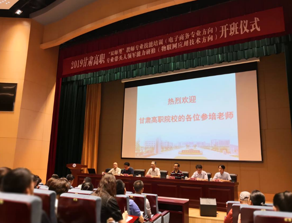 7月15日,甘肃省高职“双师型”教师专业技能培训(电子商务专业方向)在我校综合楼一楼报告厅举行开班仪式。来自甘肃省高等职业院校电子商务类专业的30名部门负责人、专业带头人将在我校参加为期28天的培训。我校党委副书记周桂瑾,继续教育学院院长崔平、管理学院院长冯臻等出席开班仪式。开班仪式由冯臻主持。